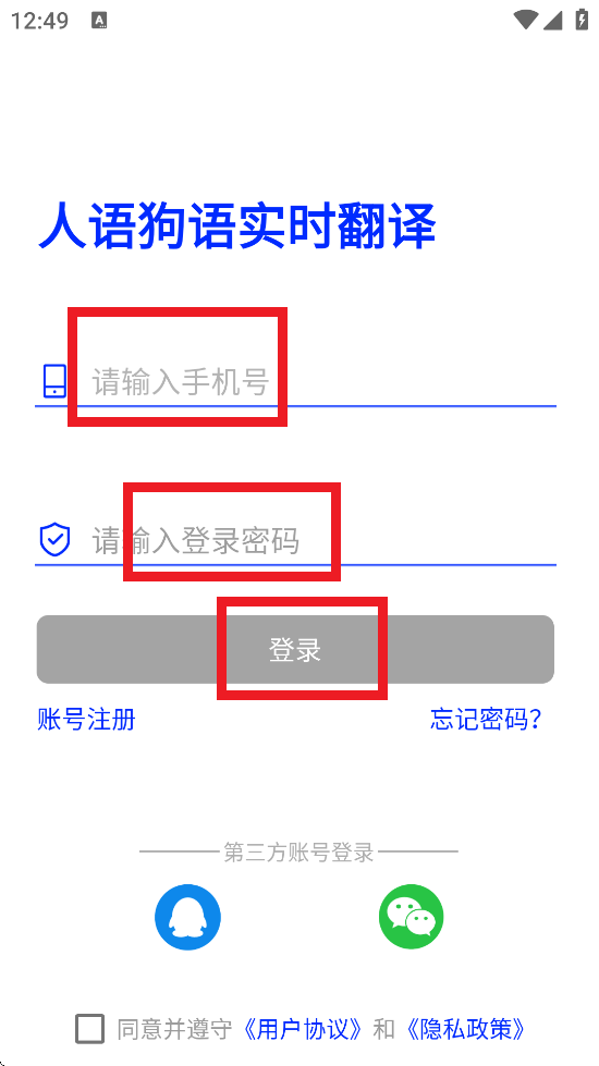 2、输入手机号、密码进行登录,若没有账号需要先进行注册。