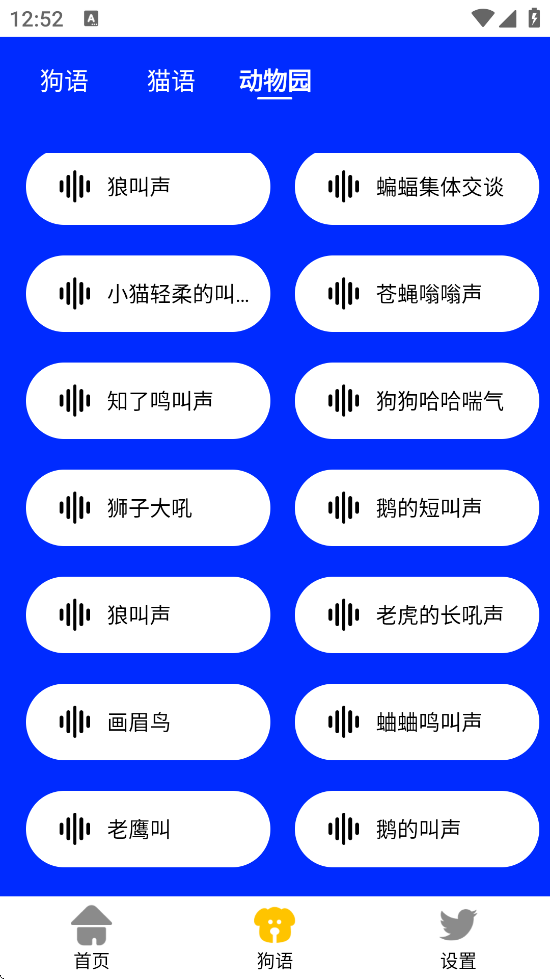 3、猫语、狗语的相互转换,模拟宠物猫咪狗狗叫声,让你和小猫小狗能够开心聊天。