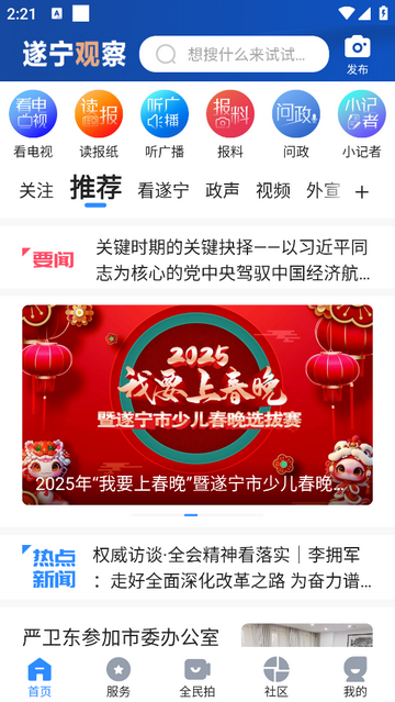 遂宁观察软件最新版本下载安装是一款新闻资讯软件,软件内为用户提供丰富的本地新闻资讯、生活服务、社区互动等功能,旨在为用户打造综合性资讯平台,更多惊喜等你发现,这么好用的资讯软件,你还在等什么?快快下载加入我们吧!