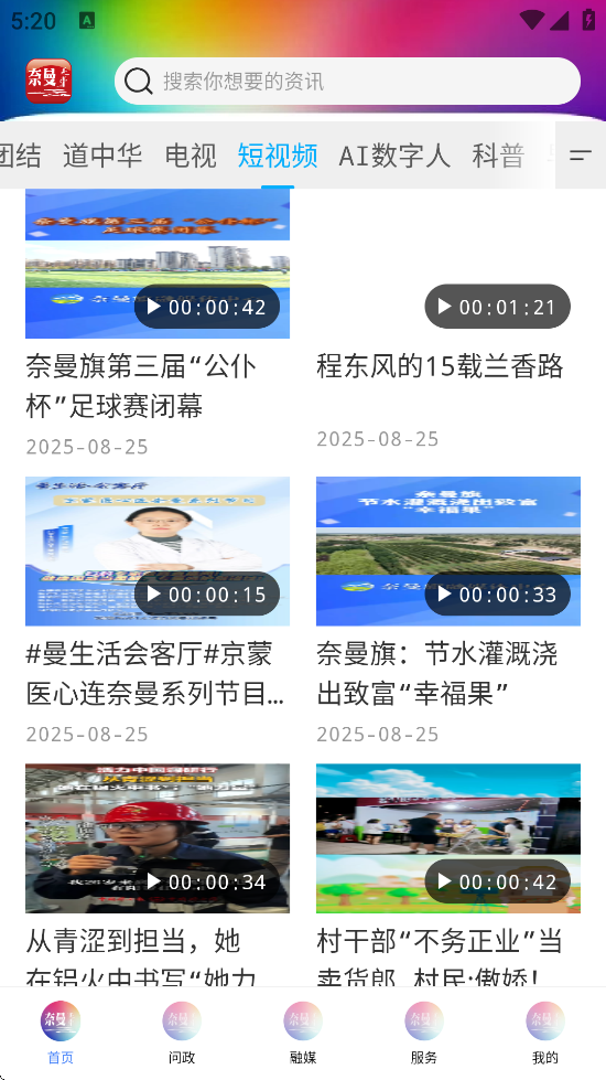 2、新闻资讯:涵盖本地时政新闻、民生动态、部门问政等内容,支持蒙语、专题、短视频等多样化栏目。